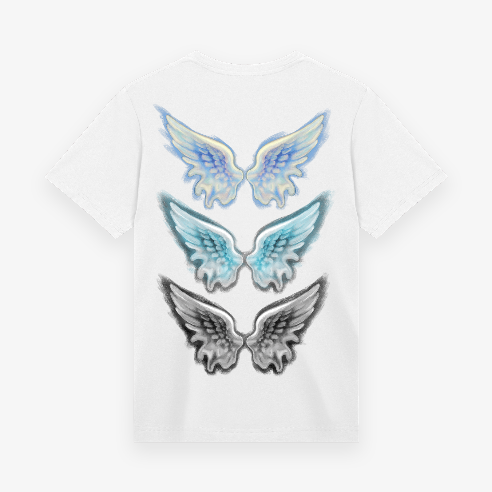 A clean, boxy-fit T-shirt featuring an airbrushed design of the classic MM logo on the front and a bold set of gradient angel wings across the back. Designed with a modern, relaxed silhouette and made to feel premium and easy to wear.Fabric & Details:– Shell: Loose Knit Single Jersey– 100% Organic Carded Cotton– Panel-washed for a soft, lived-in feelA standout piece for fans looking for a crisp, elevated everyday tee.